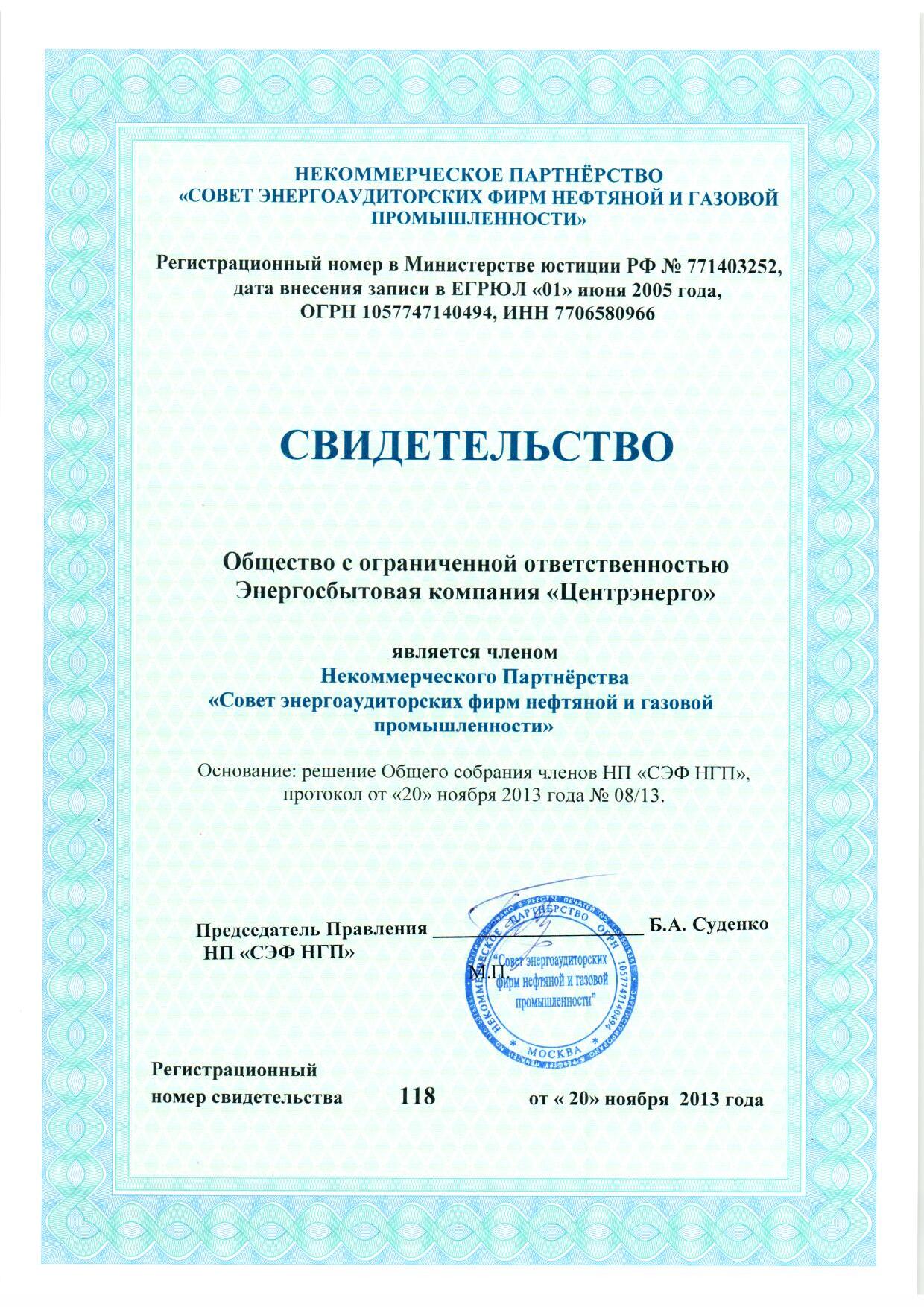 Свидетельство СРО НП СЭФ НГП